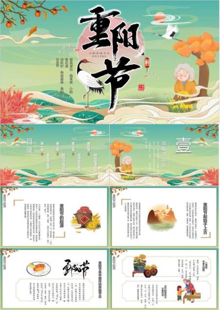 重阳习俗科普国风PPT模板