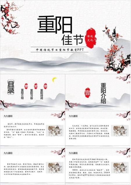 红色古典重阳文化教育PPT模板