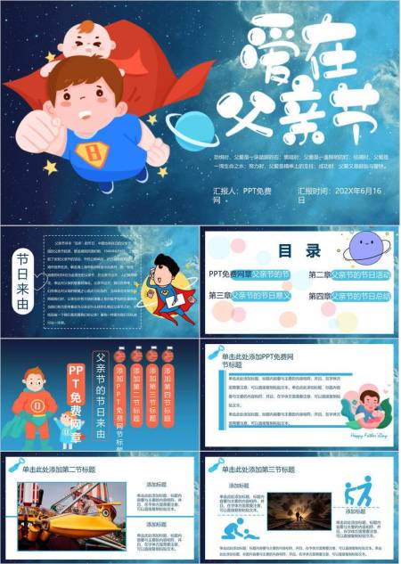 父亲节星空超级英雄活动策划PPT模板