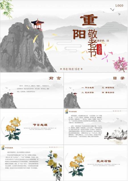 棕色古典重阳演讲PPT模板