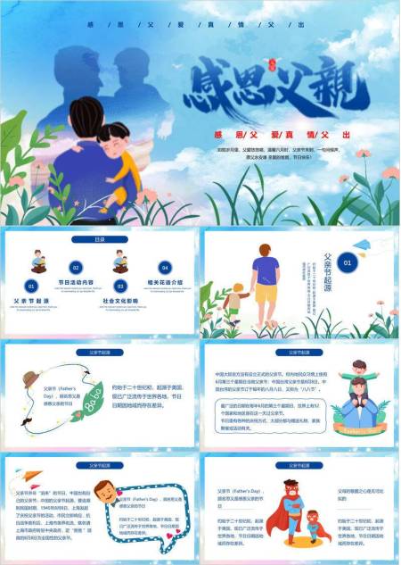 父亲节手绘感恩亲情演讲PPT模板