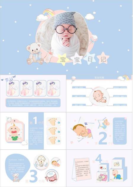 星空萌趣宝宝生日记录相册PPT模板