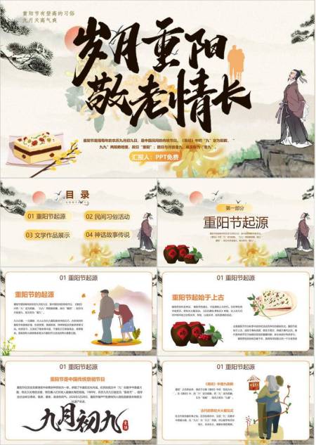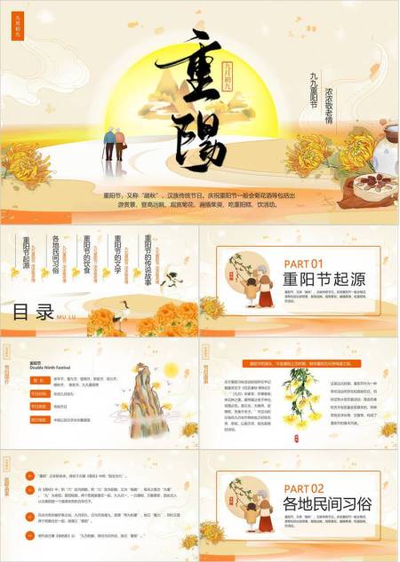 金色简约重阳节日宣传PPT模板