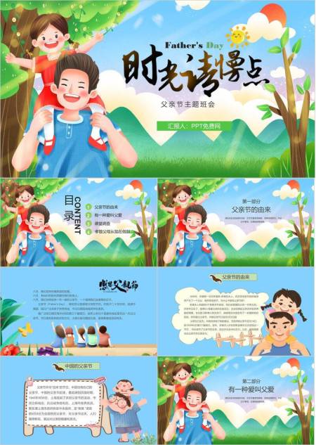父亲节卡通插画时光慢点班会PPT模板