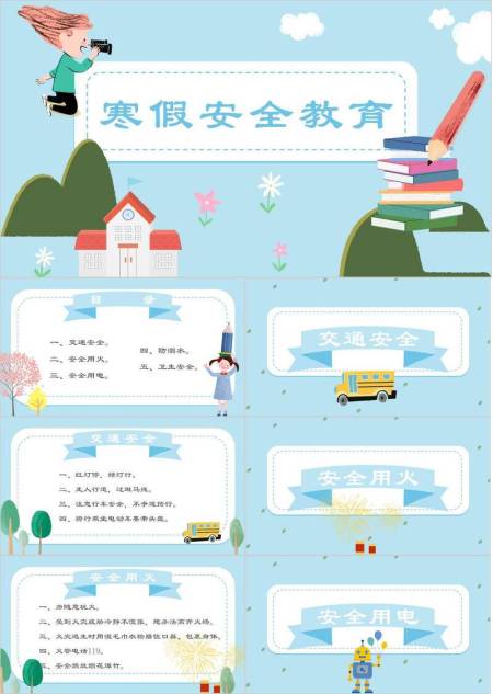 白云男孩跳跃校舍寒假安全班会PPT模板