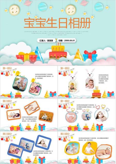 剪纸星球通用生日相册PPT模板