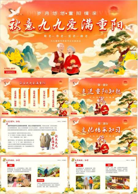 粉色扁平重阳敬老公益PPT模板