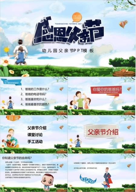 父亲节卡通梦幻童真告白活动PPT模板