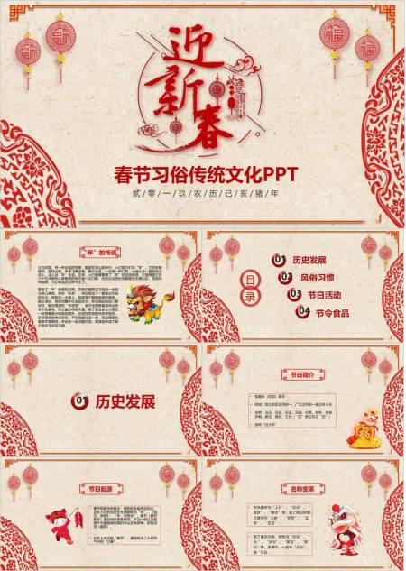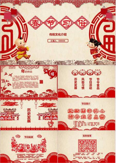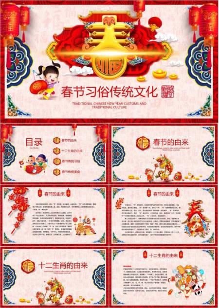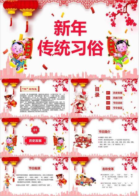胖娃娃卷轴新年传统习俗PPT