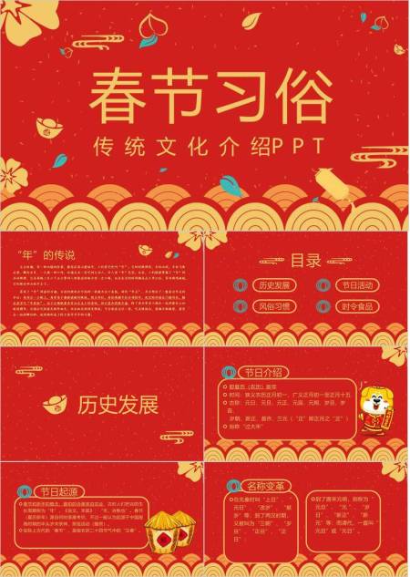金花祥云春节习俗文化介绍PPT