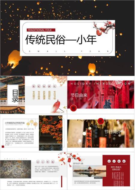 天灯红梅小年民俗主题PPT