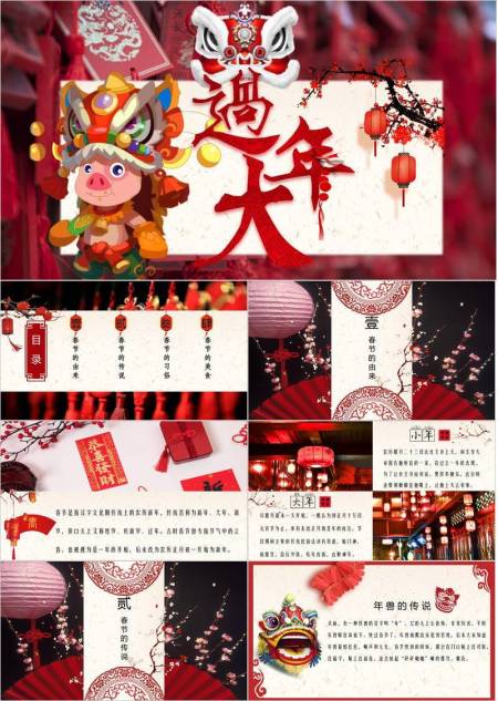 舞狮猪过大年节日宣传PPT