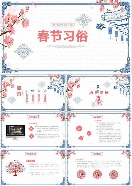 飞檐梅花春节习俗简洁版PPT