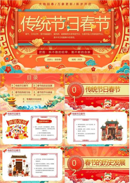 兔耳数字兔年幼儿园春节习俗课件PPT