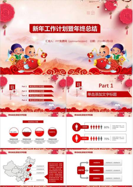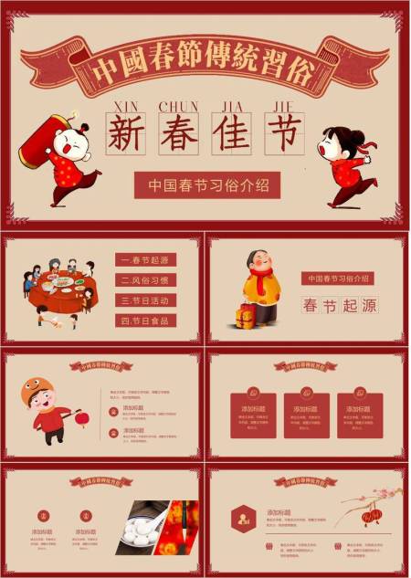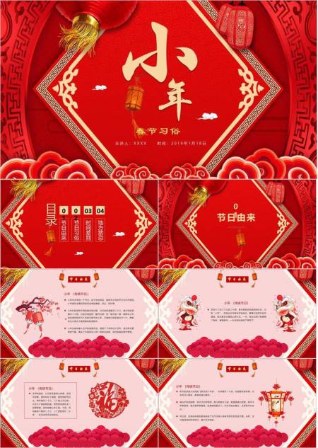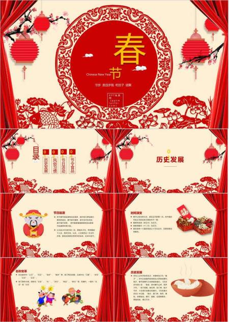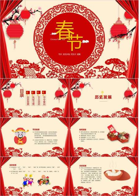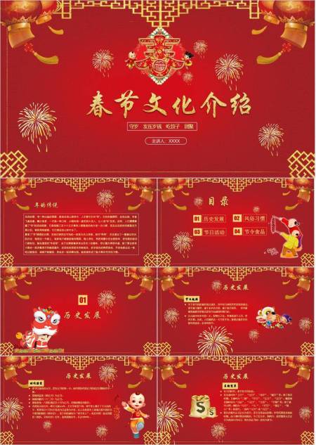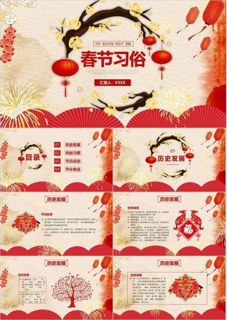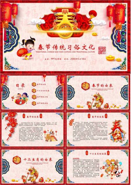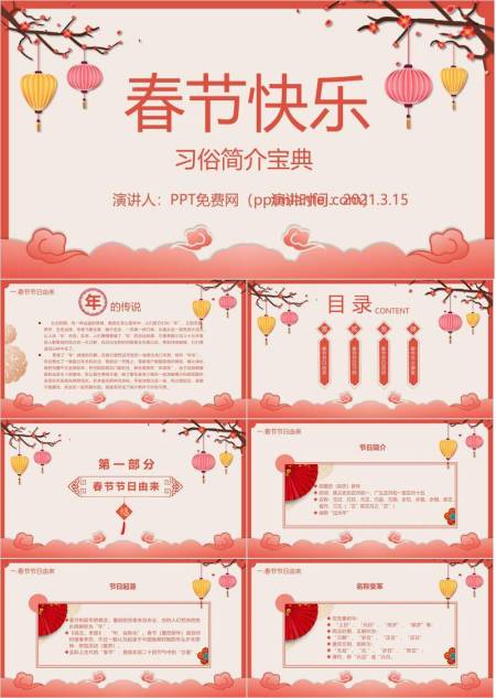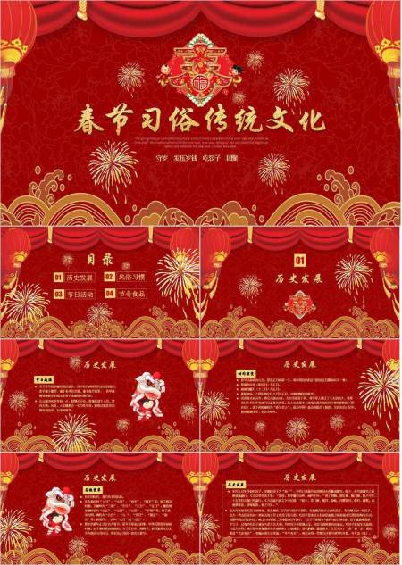 JI-000311喜庆灯笼春节习俗介绍PPT模板