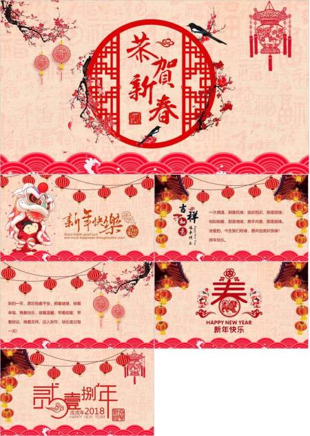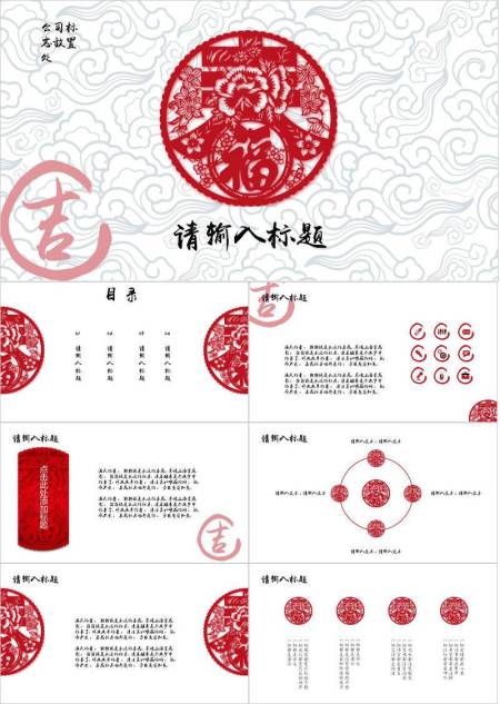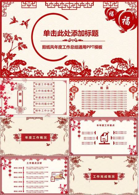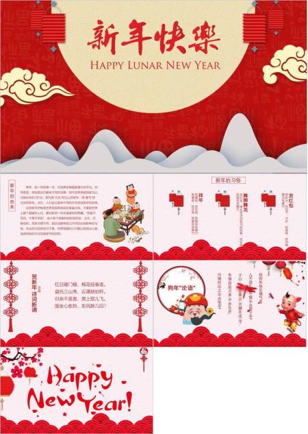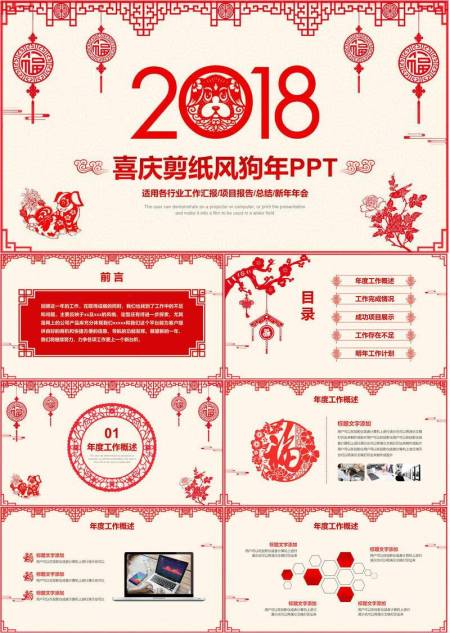 JI-000113红色喜庆剪纸风狗年PPT模板