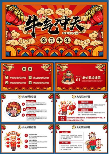 JI-00093国潮风牛气冲天牛年春节PPT模板