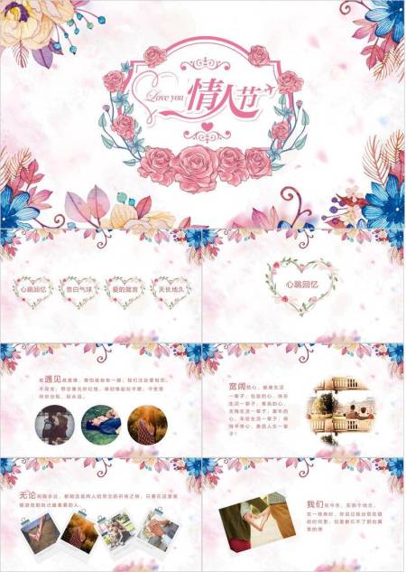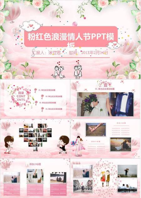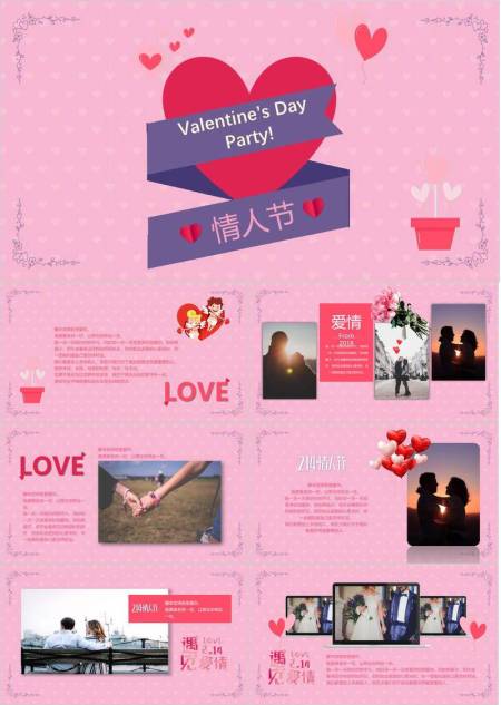JI-00060粉色爱心情人节PPT模板