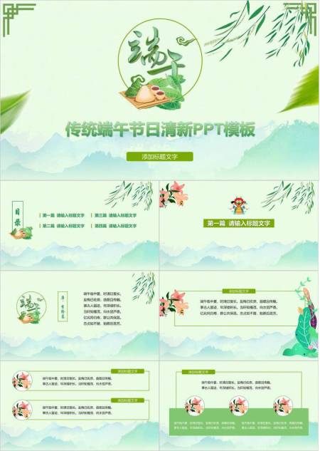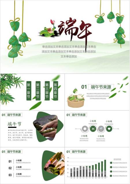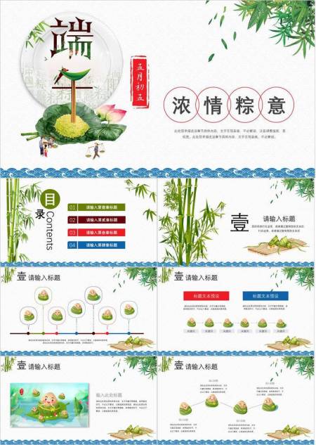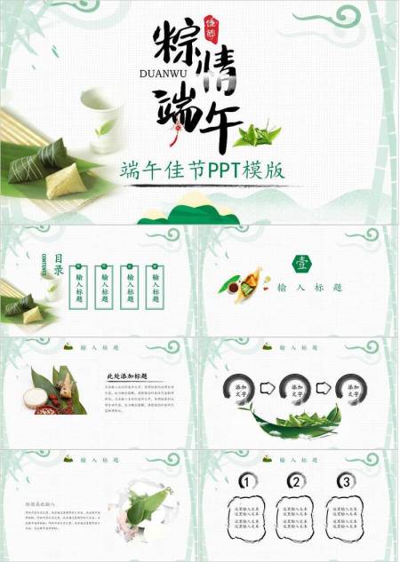 JI-000347竹叶粽子清新端午节PPT模板
