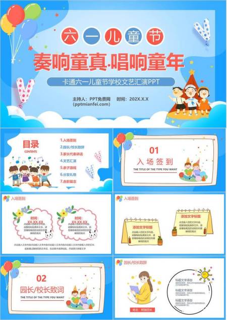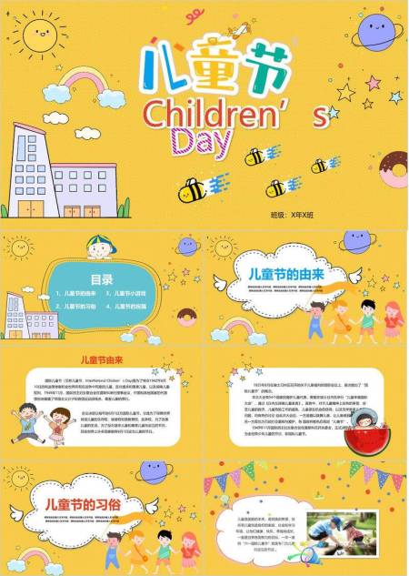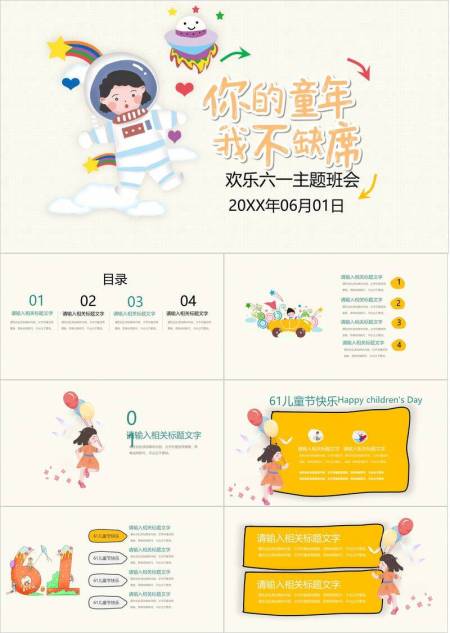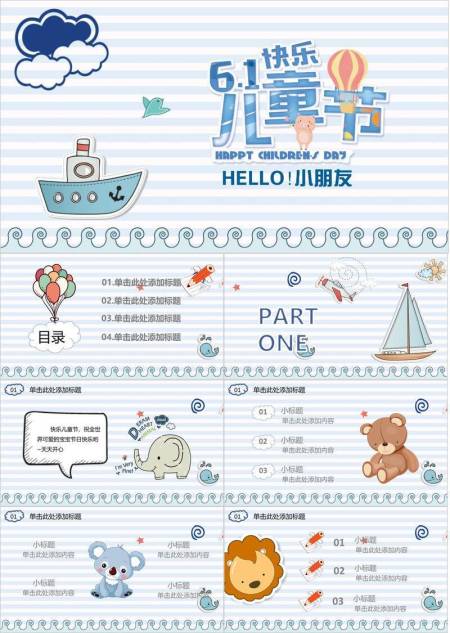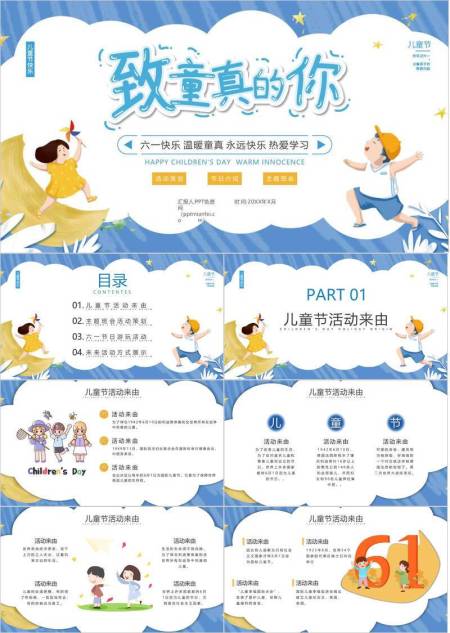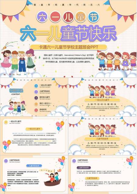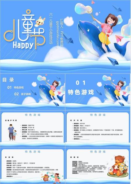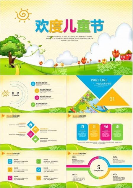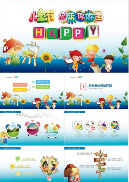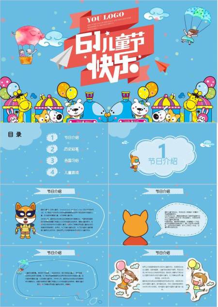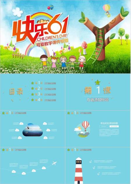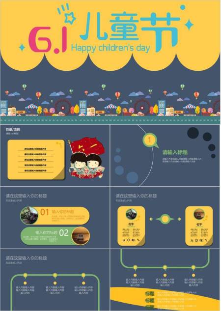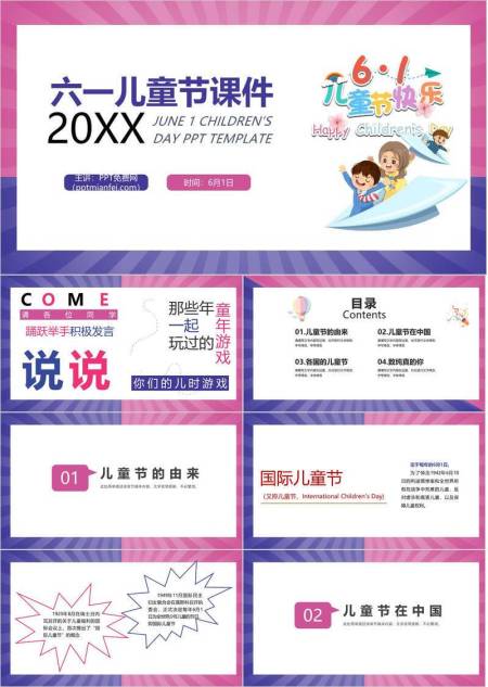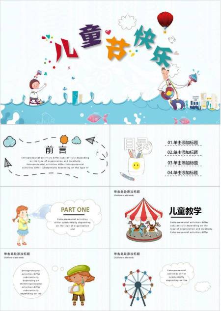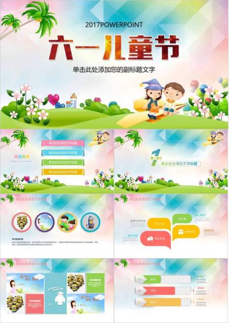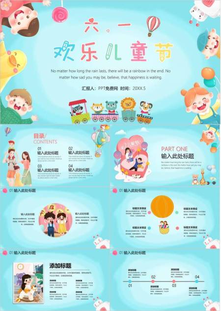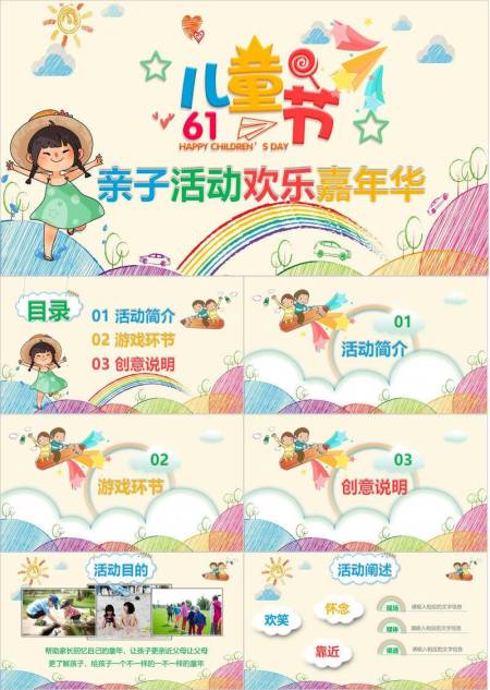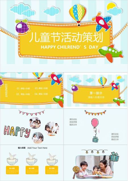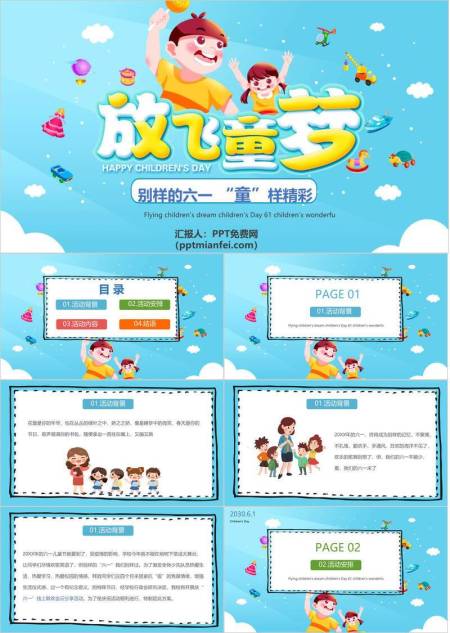 JI-00059放飞梦想缤纷儿童节PPT模板