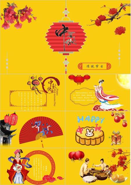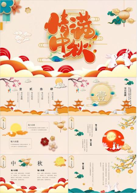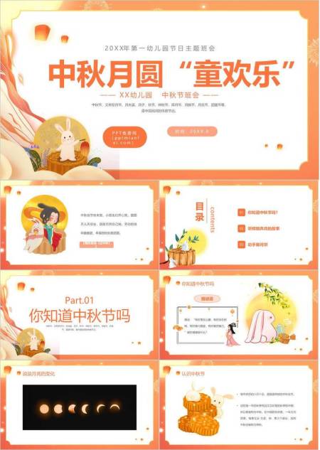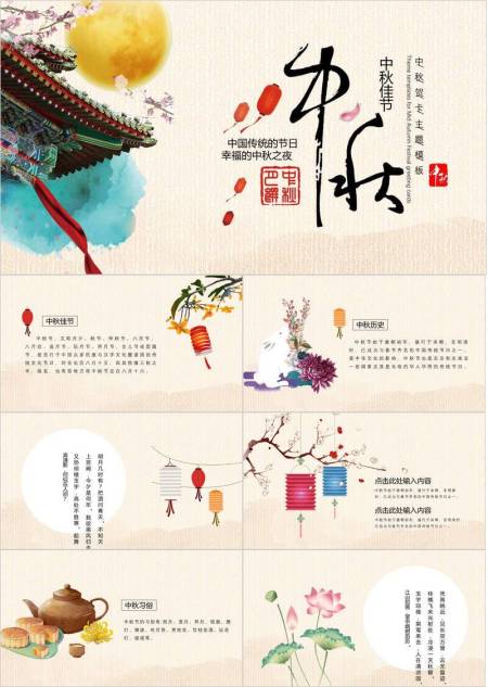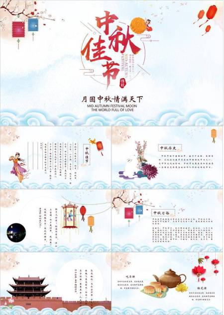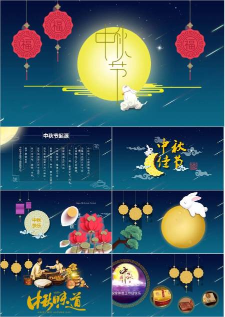 JI-000185可爱卡通中秋节贺卡PPT模板