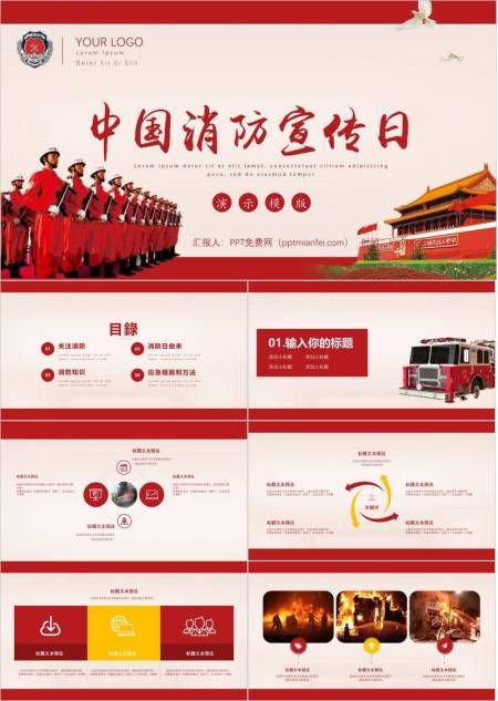 JI-000325消防宣传日防火PPT模板