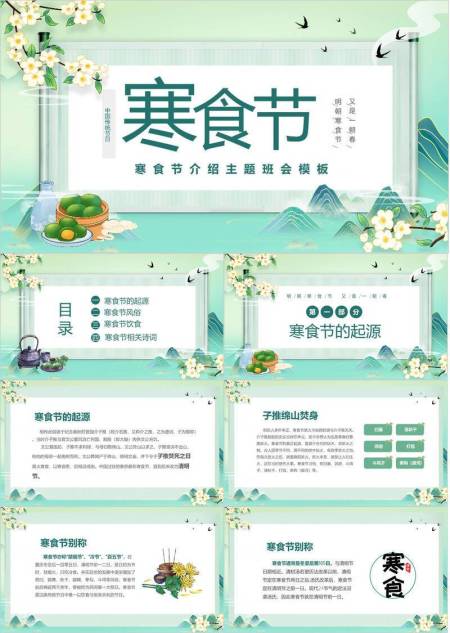 寒食节介绍主题班会PPT模板