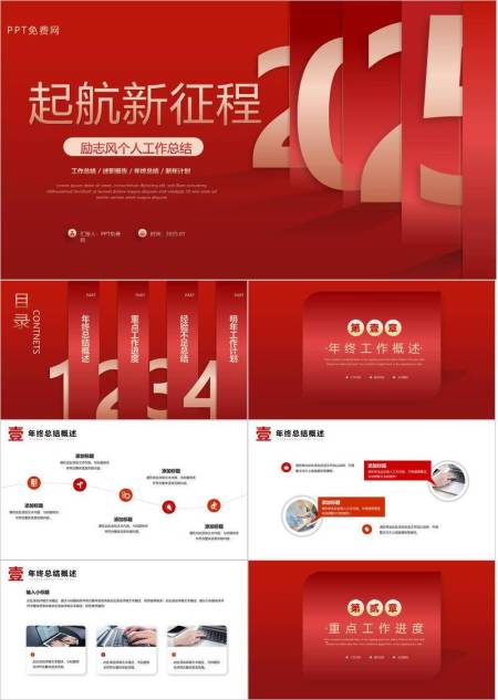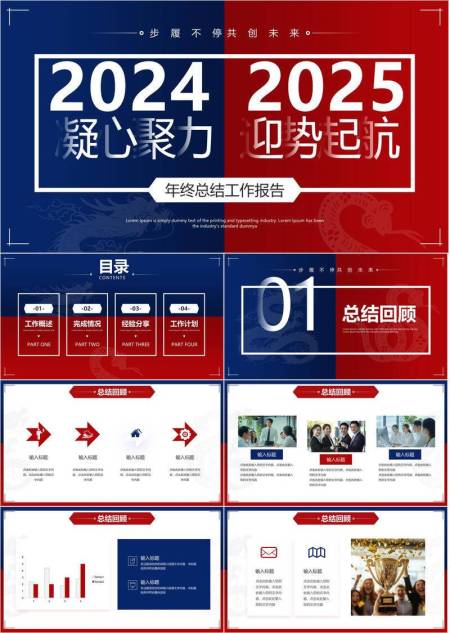 双色步履商务风企业年终工作报告PPT模板