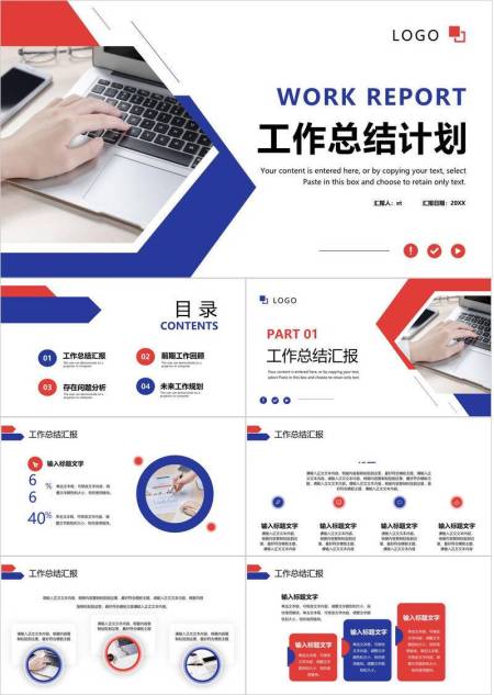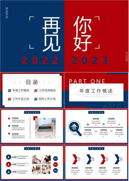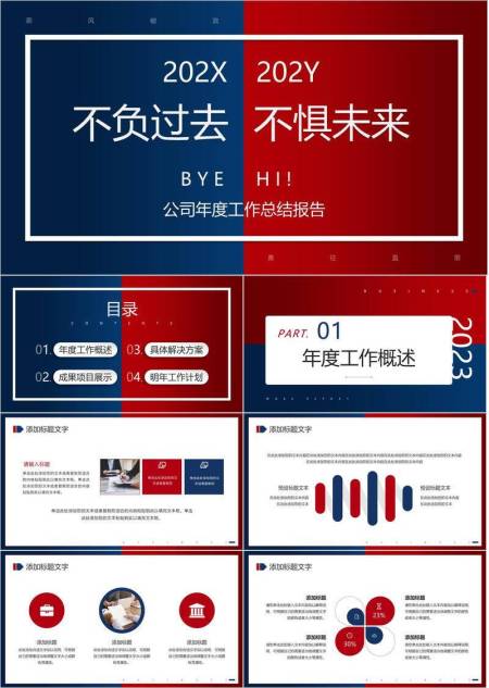红蓝篇章极简风公司年终总结报告PPT模板