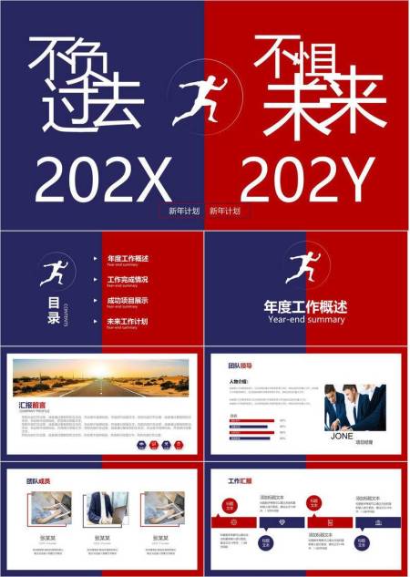 生肖交替红蓝风新年贺岁年终总结PPT模板