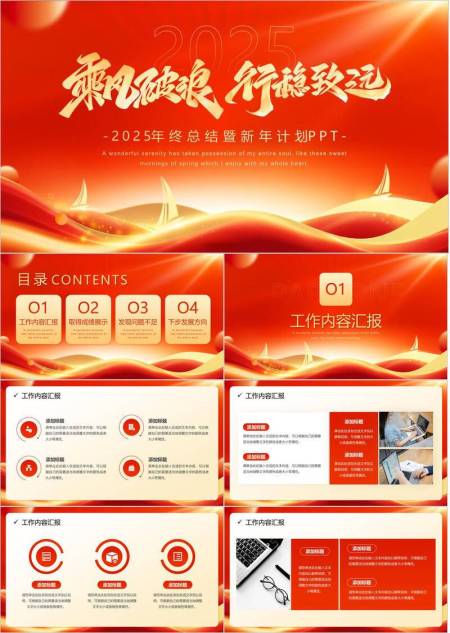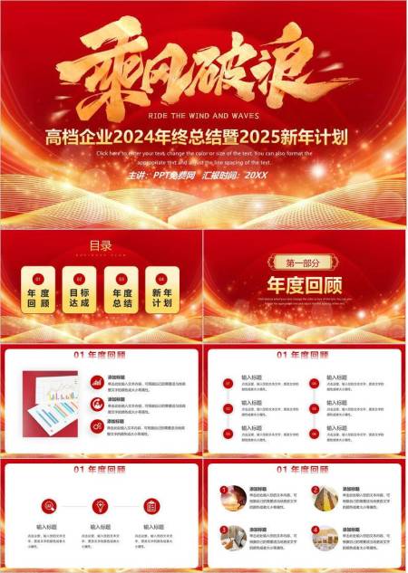 鎏金波浪风行稳致远年终总结PPT模板