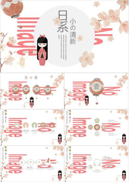 日系动漫和服娃娃樱花灯笼温馨PPT模板