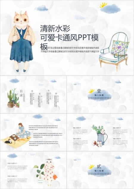 拟人化穿裙猫咪动漫可爱卡通风儿童PPT模板
