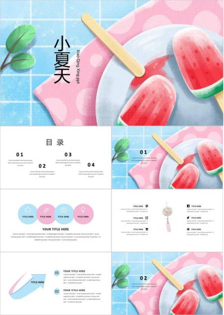 西瓜冰棍夏日动漫生活小清新美食PPT模板