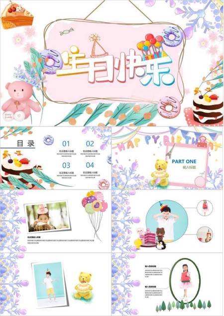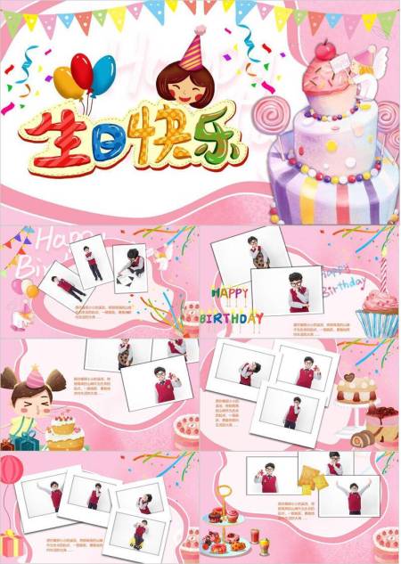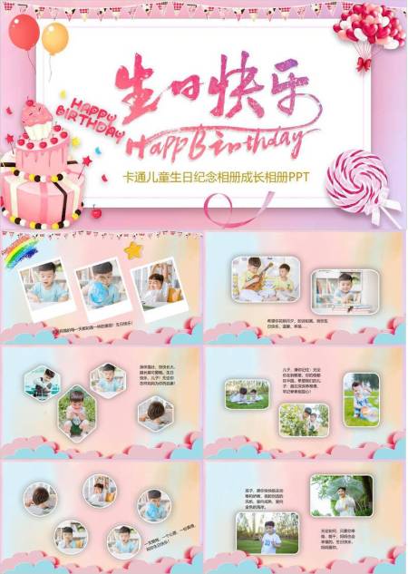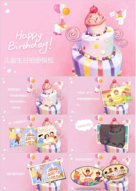 天使蛋糕棒棒糖生日相册模板PPT模板