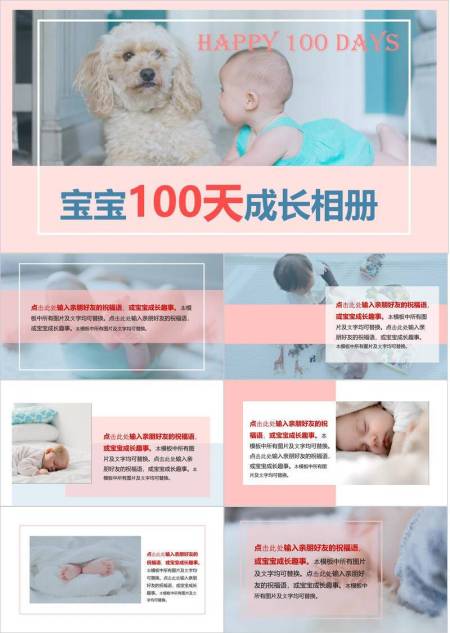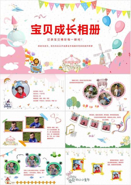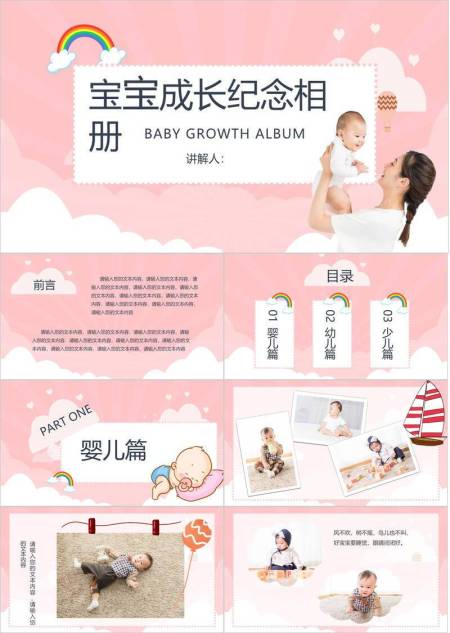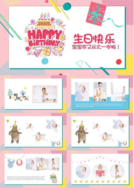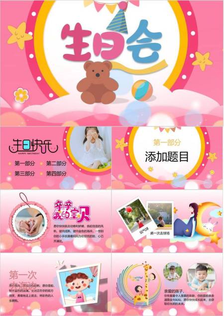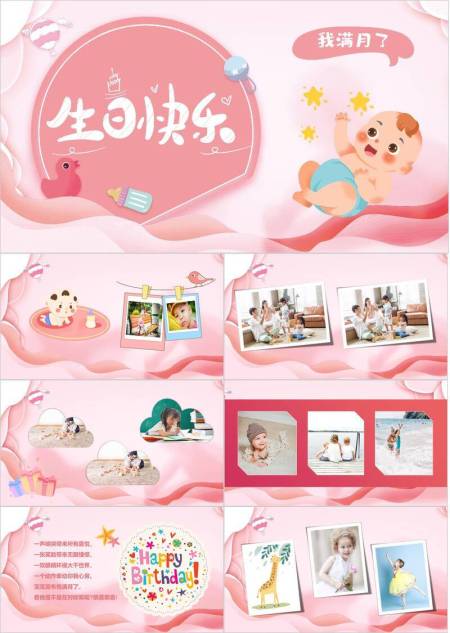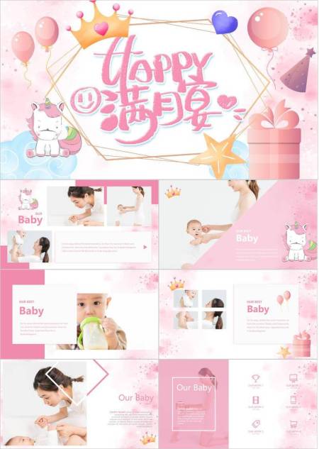粉红独角兽梦幻儿童生日满月宴PPT模板