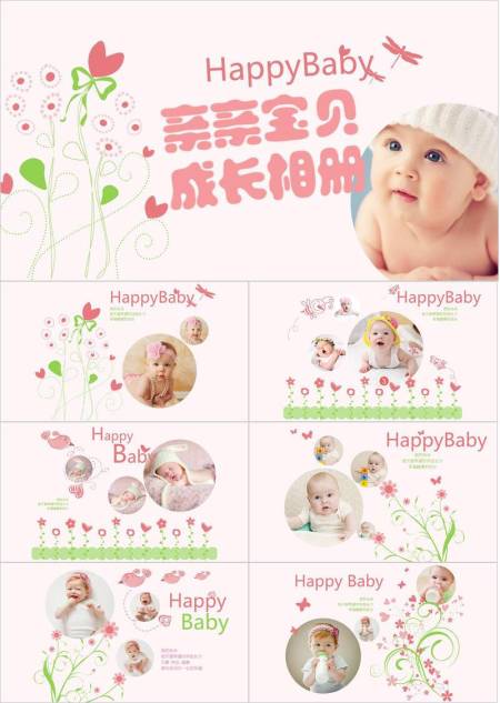 藤蔓爱心亲亲宝贝生日相册PPT模板