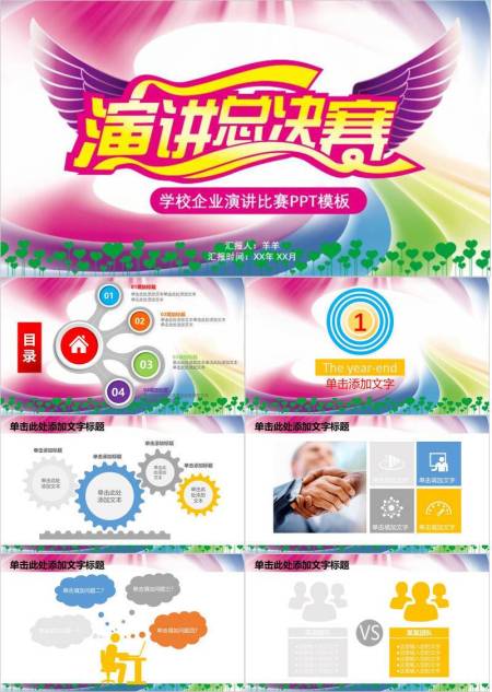 翅膀飞扬演讲总决赛校园卡通PPT模板