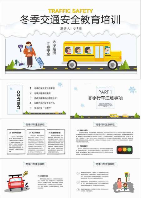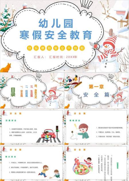 云朵对话框雪人狐狸幼儿园寒假安全教育PPT模板
