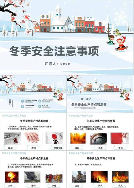 欧式小镇儿童滑雪冬季安全事项PPT模板