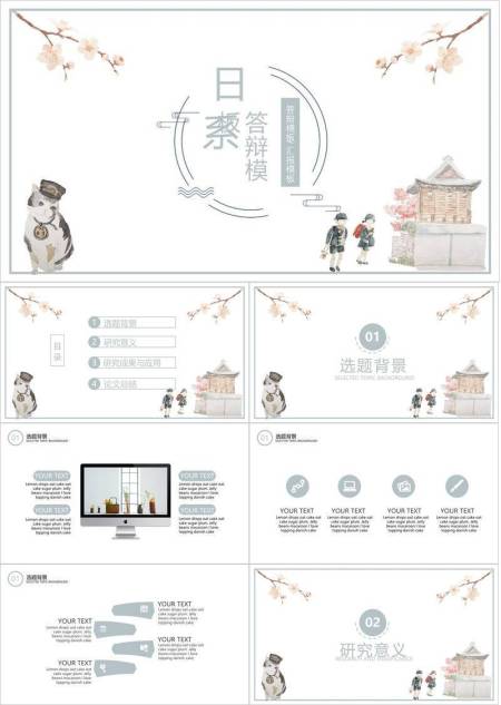 日系动漫校园答辩毕业汇报手绘猫咪神社PPT模板