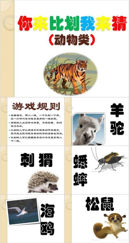 老虎草丛动物主题比划猜游戏PPT模板