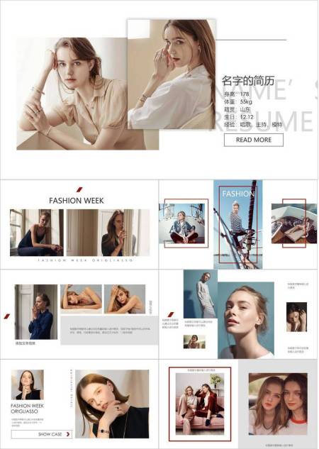柔光双帧女性模特气质介绍PPT模板