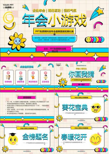 粉格子笑脸孟菲斯风2025蛇年小游戏PPT模板