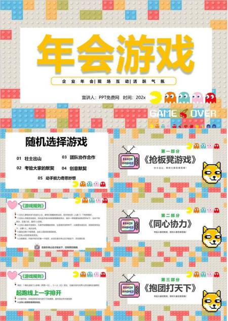 乐高积木吃豆人像素风创意年会游戏PPT模板