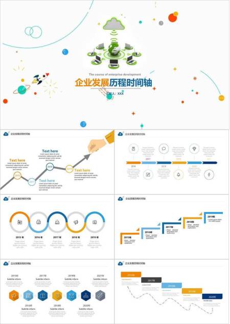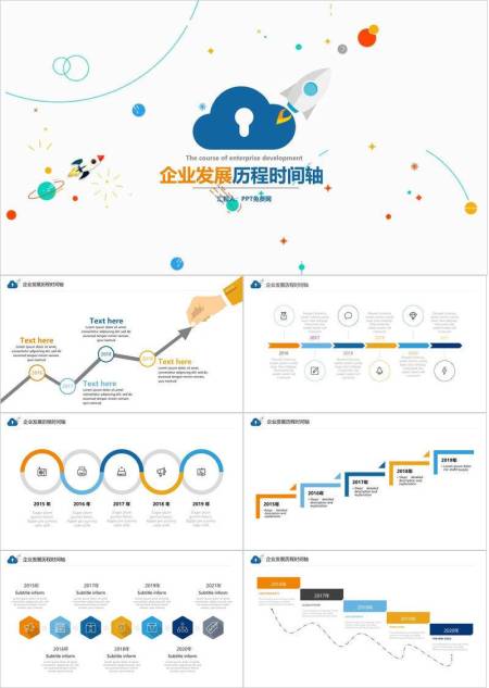 卡通云朵火箭企业成长趣味时间轴PPT模板