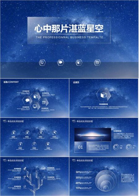 星空水晶透明蓝PPT模板