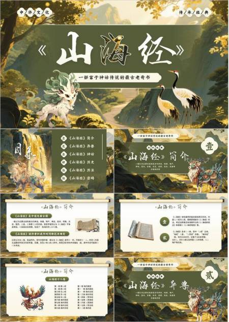 神兽仙鹤山水宣传PPT模板