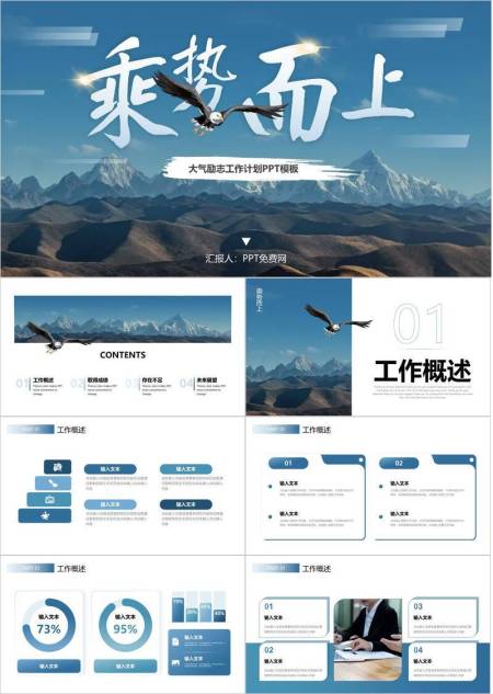 雄鹰展翅乘势风企业年终战略计划PPT模板