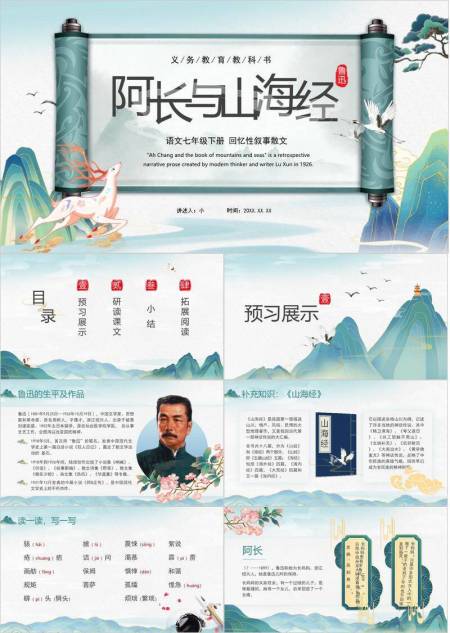 卷轴仙鹿奔跑教材课件PPT模板